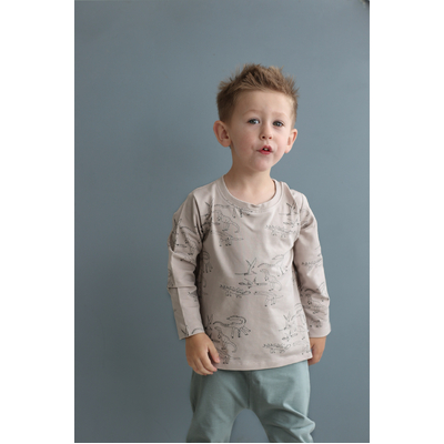 Designed for cooler days and adventurous spirits, our Dino Roar Long Sleeve T-Shirt combines comfort, stretch, and playful style. Made from 95% organic cotton and 5% elastane, this tee features exclusive dinosaur illustrations by 9-year-old Remi, adding a quirky, artistic touch to a classic dino design. The warm beige-grey color makes it a versatile, everyday essential. Designed in New Zealand and ethically made in India, it’s a must-have for little explorers. Keywords: organic long sleeve t-shirt, dinosaur kids clothing, soft cotton tee, ethically made kidswear, comfy kids fashion