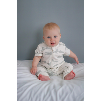 The Dreamscape Short Sleeve Zip Suit combines practicality with dreamy design. Made from 100% organic cotton, this one-piece features a two way full-length zip for easy changing, making it an essential for busy parents. The gender-neutral Dreamscape print, inspired by Aotearoa (Land of the Long White Cloud) and the magic of cloud-gazing, brings a whimsical charm to this breathable, soft, and comfortable outfit. Perfect for warm days and as sleepwear, it’s a versatile addition to your baby’s wardrobe.