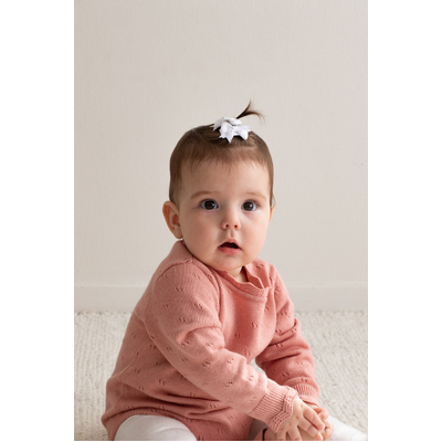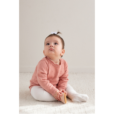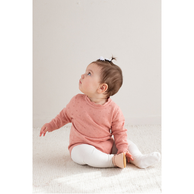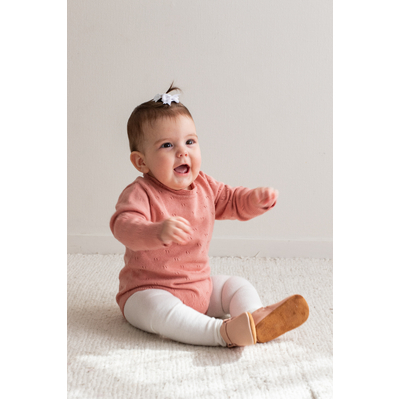 Add a pop of rich colour with our Petunia Knit Bodysuit, crafted in a vibrant floral pink tone. Featuring subtle pointelle knit accents, fine detailing at the cuffs and neckline, and mother-of-pearl buttons for easy dressing, this piece is as practical as it is beautiful. Made from a luxurious cotton cashmere blend (95% cotton, 5% cashmere), it’s soft, cosy, and gentle on delicate skin. Wear solo or layer with, pants, leggings or tights for endless outfit possibilities.