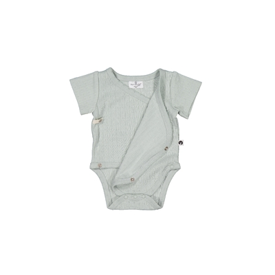 The Haze Pointelle Kimono Bodysuit is a beautifully soft and breathable essential for your little one. Crafted from 100% organic cotton, the delicate pointelle rib knit adds a vintage touch, while the kimono wrap design allows for easy dressing—perfect for newborns. The Haze color, a calming pastel blue-green, offers a fresh and timeless look. Pair it with other pointelle pieces or mix and match for a versatile wardrobe.