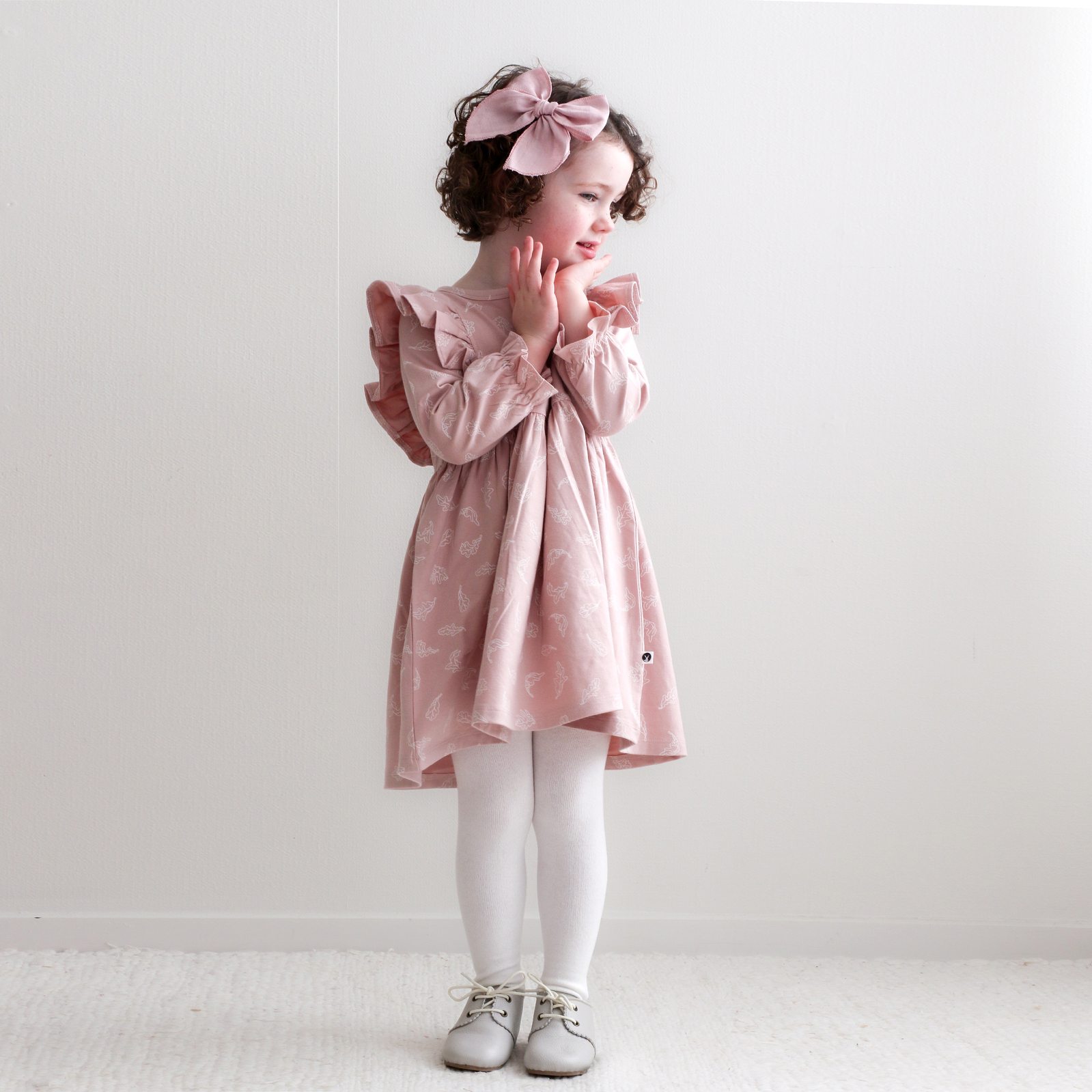 Dress your little one in the sweet Hazel Dress, featuring the subtle flutter print of falling Autumn leaves. Made from 95% organic cotton and 5% elastane, this dress is both soft and comfortable, perfect for everyday play and special outings.