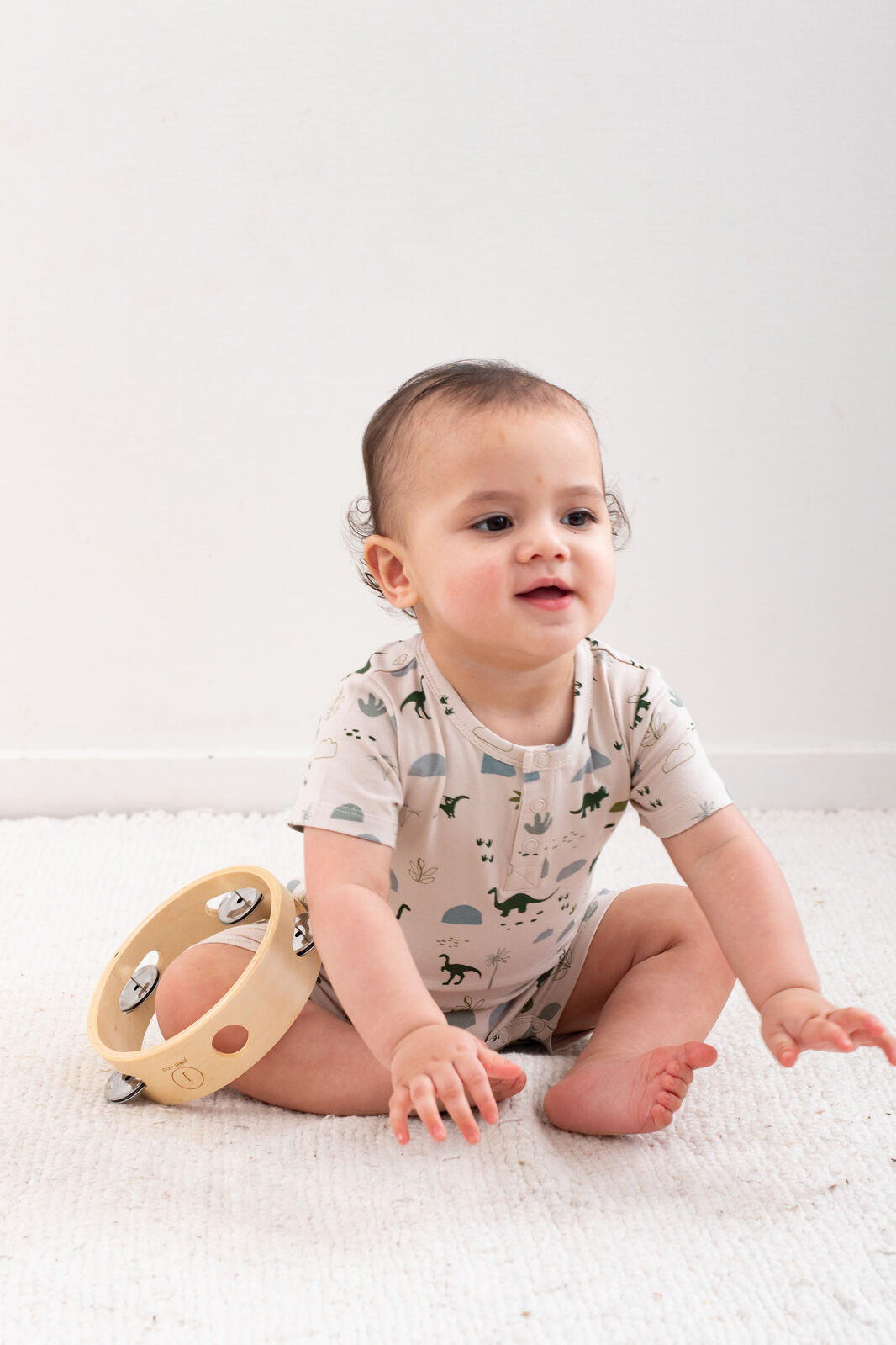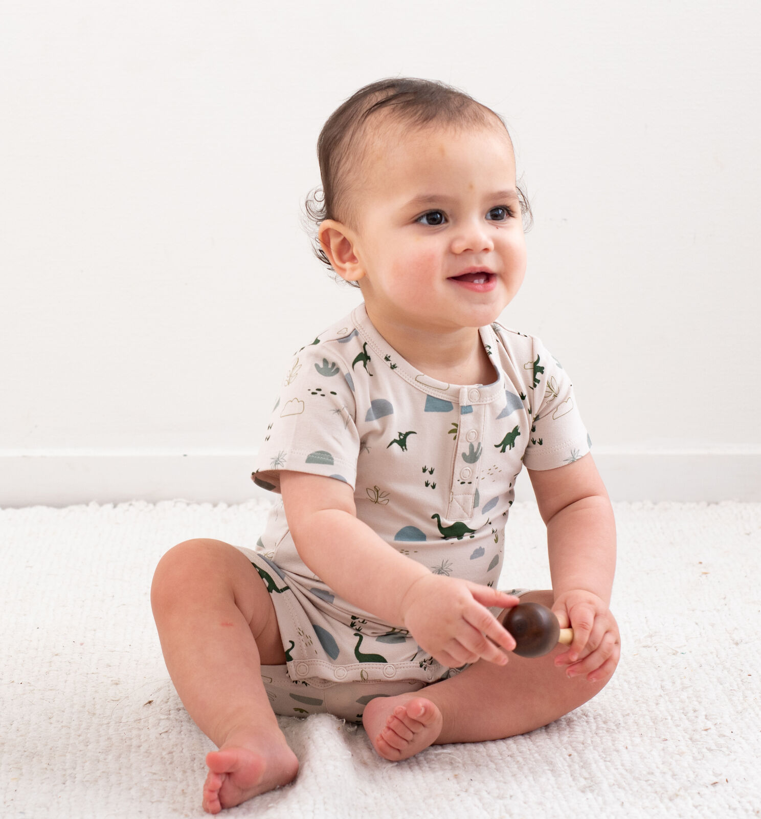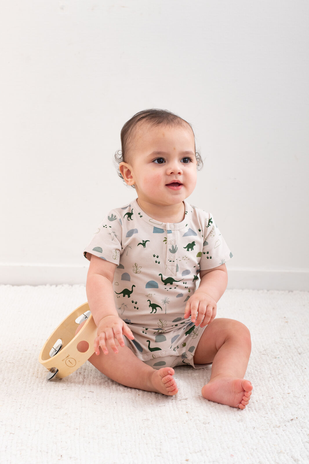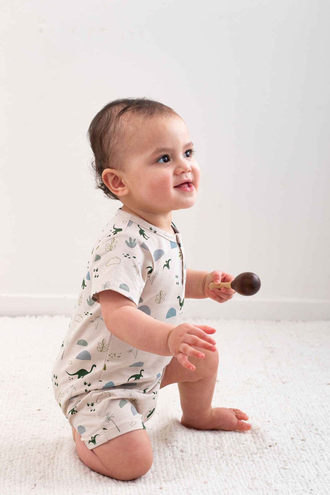 The Alex Romper in our Jurassic Roam print is the ultimate all-in-one outfit for babies on the move. With its earthy dinosaur design and easy-fit style, it's both practical and adorable.