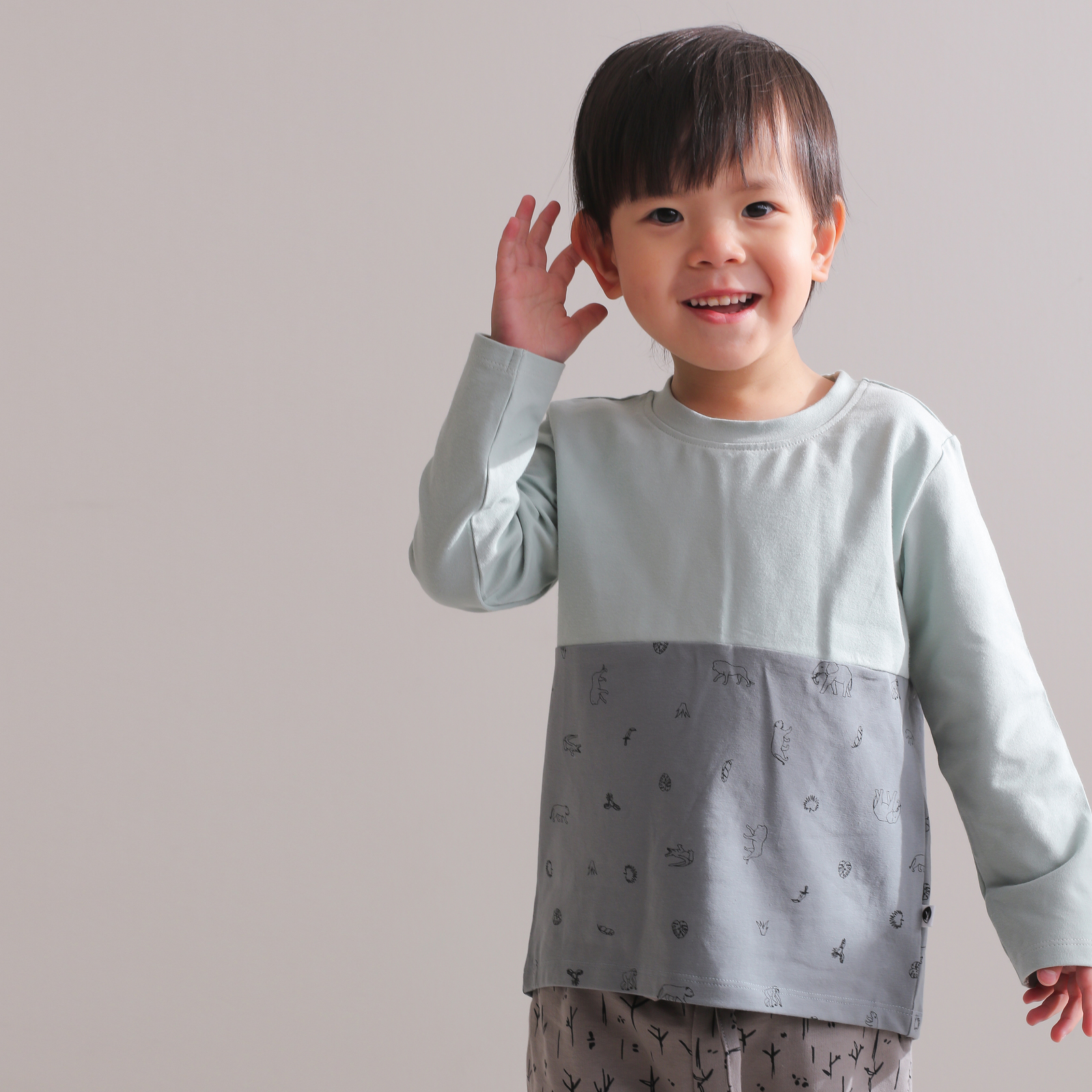 Freshen up your little one's wardrobe with our Long Sleeve T-Shirt in Mist Blue and Junglette print on Storm.