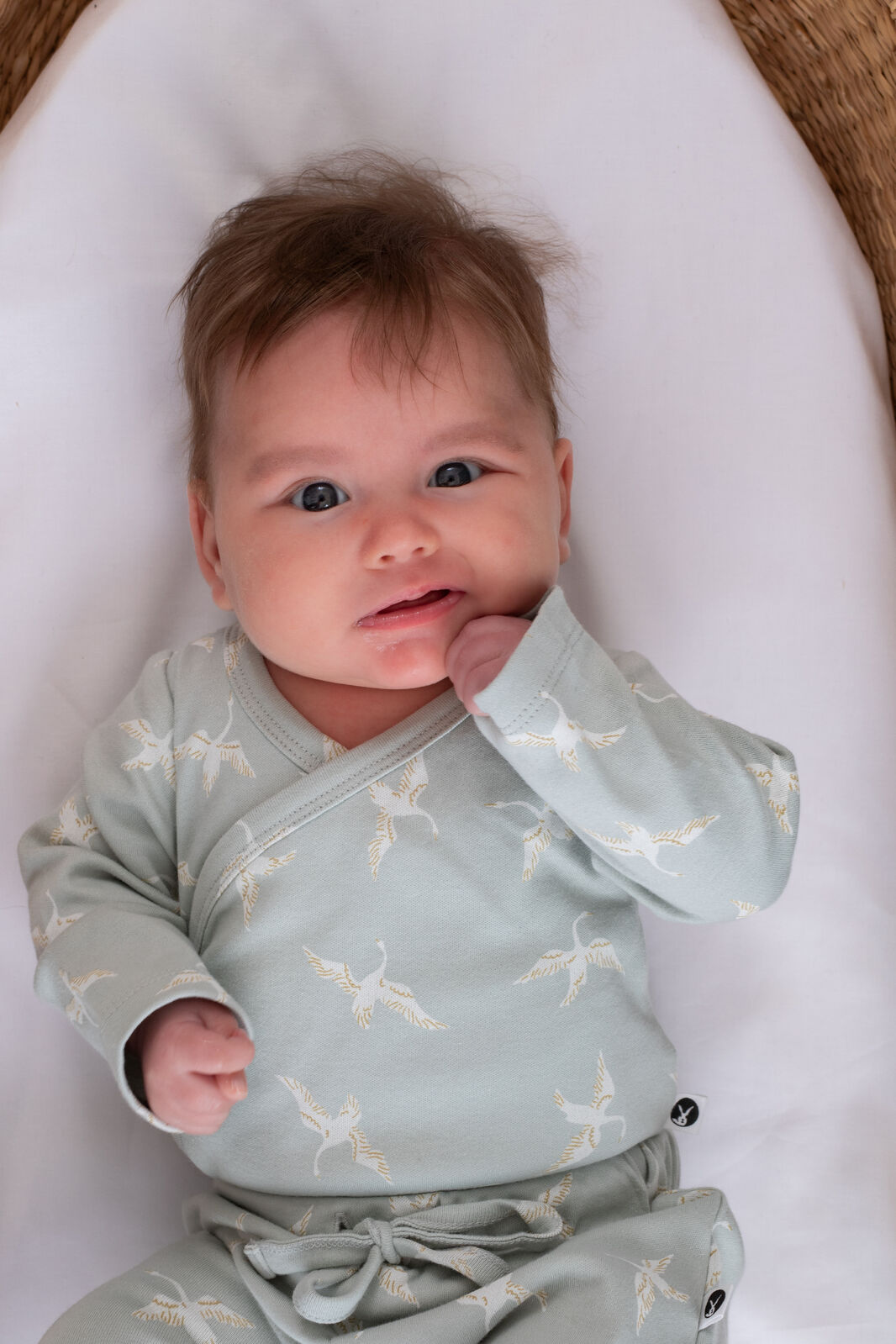 Wrap your little one in comfort and conscious design with our Swan Flight collection, Crafted from 100% organic cotton, each piece is made with a soft interlock knit gentle on delicate skin and kind to the planet. Our Kimono Style Long Sleeve Bodysuit Designed for newborn ease, the kimono wrap style allows for stress-free dressing with no need to pull over baby's head.