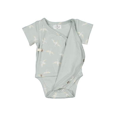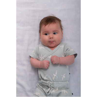 Wrap your little one in comfort and conscious design with our Swan Flight collection, Crafted from 100% organic cotton, each piece is made with a soft interlock knit gentle on delicate skin and kind to the planet. Our Short Sleeve Kimono Bodysuit an everyday must-have for cooler months, designed with snaps down the side for gentle dressing. Perfect for sleepy babies or those that don't like over the head changes.